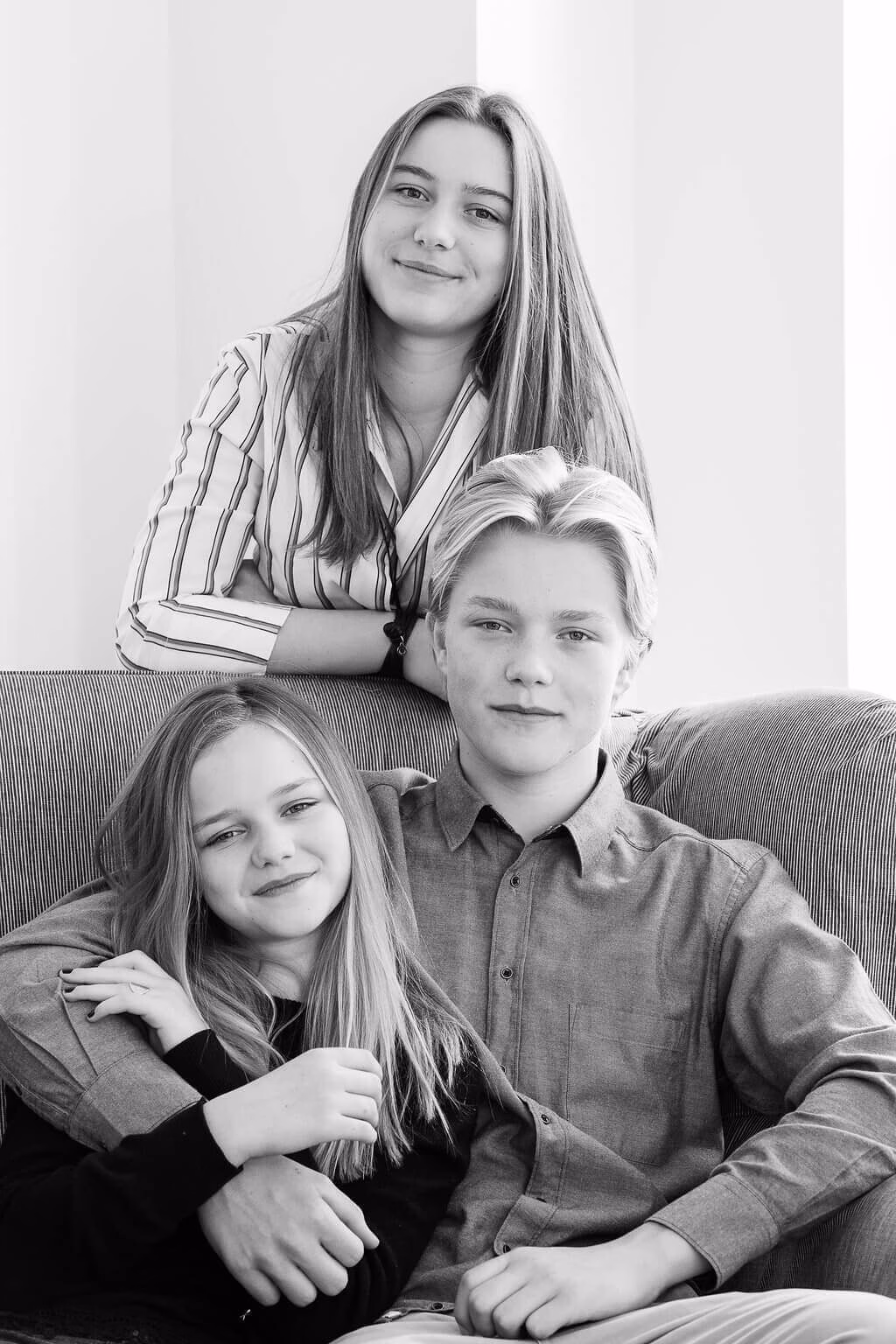 In search of this authenticity, I moved the shoot to the family’s favourite place – the kitchen sofa, nestled beneath a collage of fond memories. As the teenagers settled in their comfort zone, I captured candid portraits that revealed more about their true selves.
