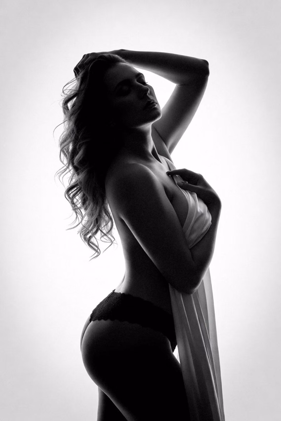 Private boudoir sessions in studio, hotel, or your home – gently guided posing, refined black & white portraits, and complete discretion.